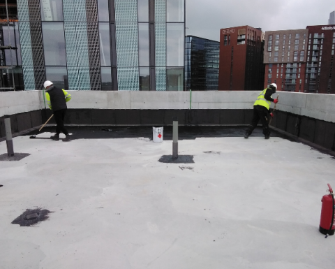 Part of Renaker’s ‘Greengate’ development and situated within the new ‘Colliers Yard’ neighbourhood in Salford, our involvement on this project focused on the roofing elements to a new residential high-rise tower, later named ‘Cortland’. Roof areas included the 50th level, a podium area on level 4 and various walkways around the perimeter of the building. The development provides 559 apartments and a retail space whilst becoming Salford’s tallest building.
