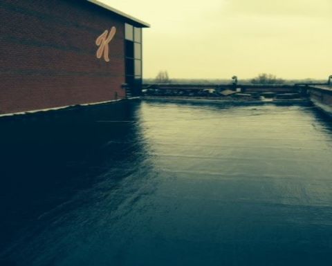 The hidden waterproof membrane (in this instance asphalt) had failed but Kellogg’s were keen to keep the roof inverted as the insulation and ballast protect the waterproof membrane from foot traffic.